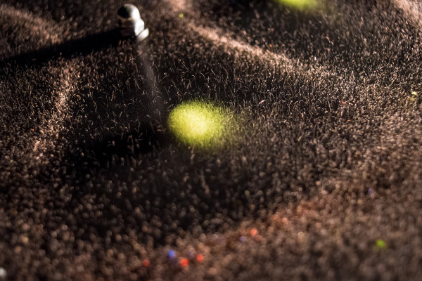 Il progetto “80 mesh – la forma del suono” nasce con l’obiettivo di indagare i concetti che appartengono al linguaggio del mosaico, aggregazione e disaggregazione, schema ripetizione e modularità, attraverso l’utilizzo del suono e delle sue possibilità morfogenetiche.